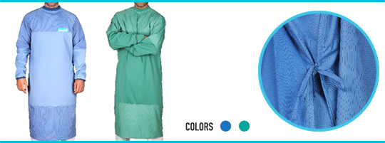 100% silver yarns running through the gown eliminate the stress caused by the static electricity during long lasting operations.